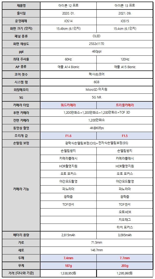 2. 아이폰 12 PRO vs 아이폰 13 PRO