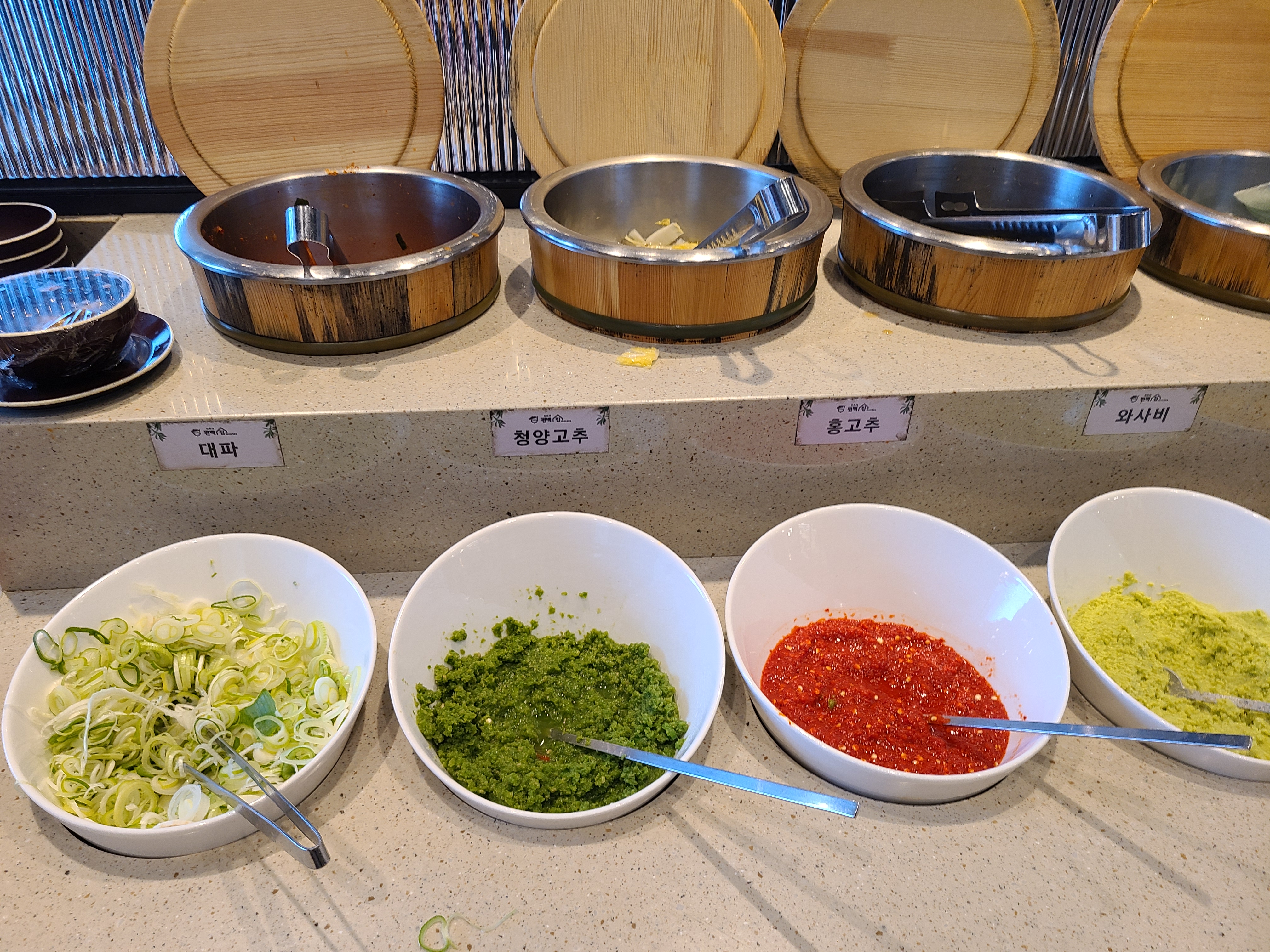 기다리는 동안 셀프바에 가서 소스를 만들어 오면 돼요~