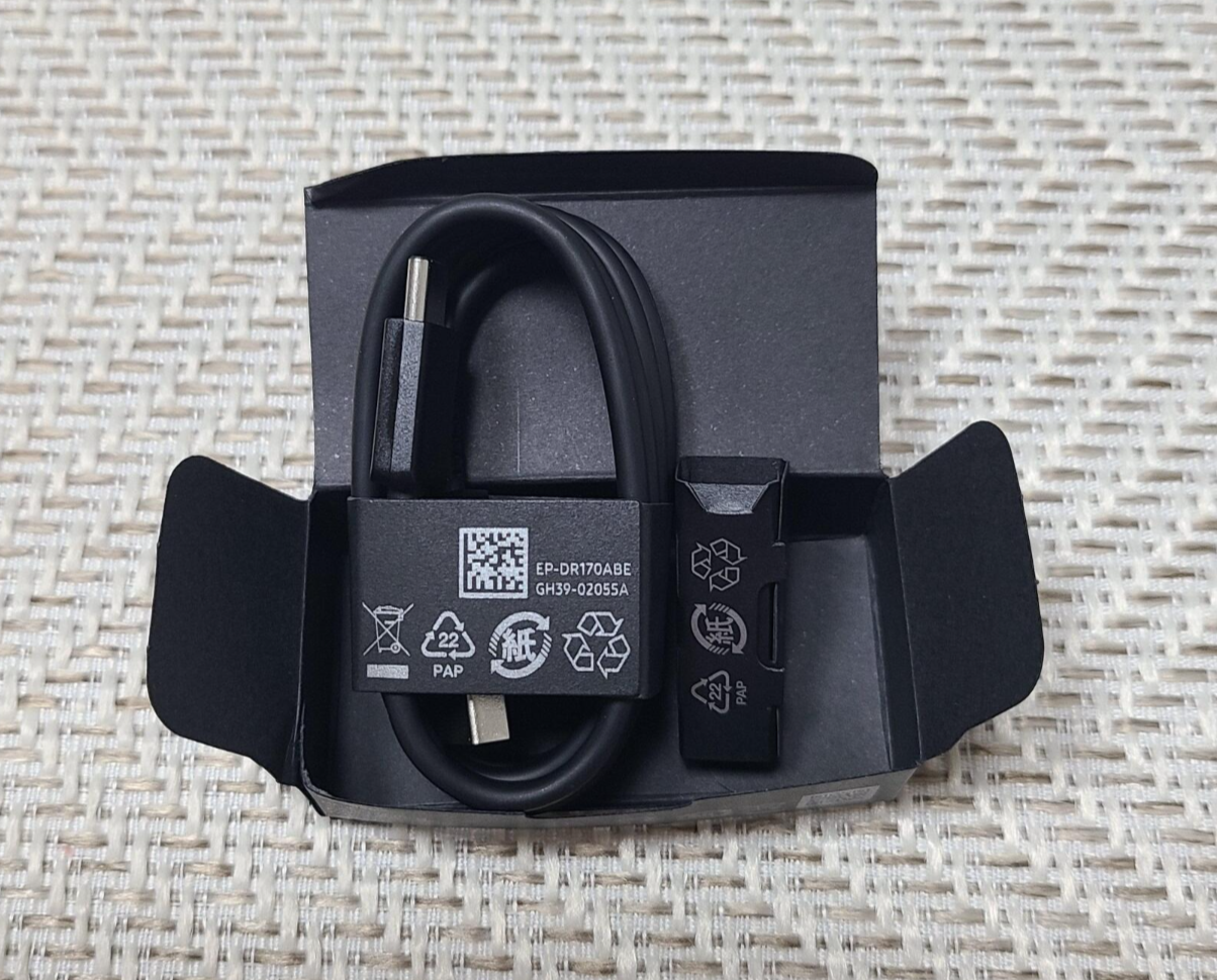 작은 상자에는 충전기선과 이어캡이 들어있다.