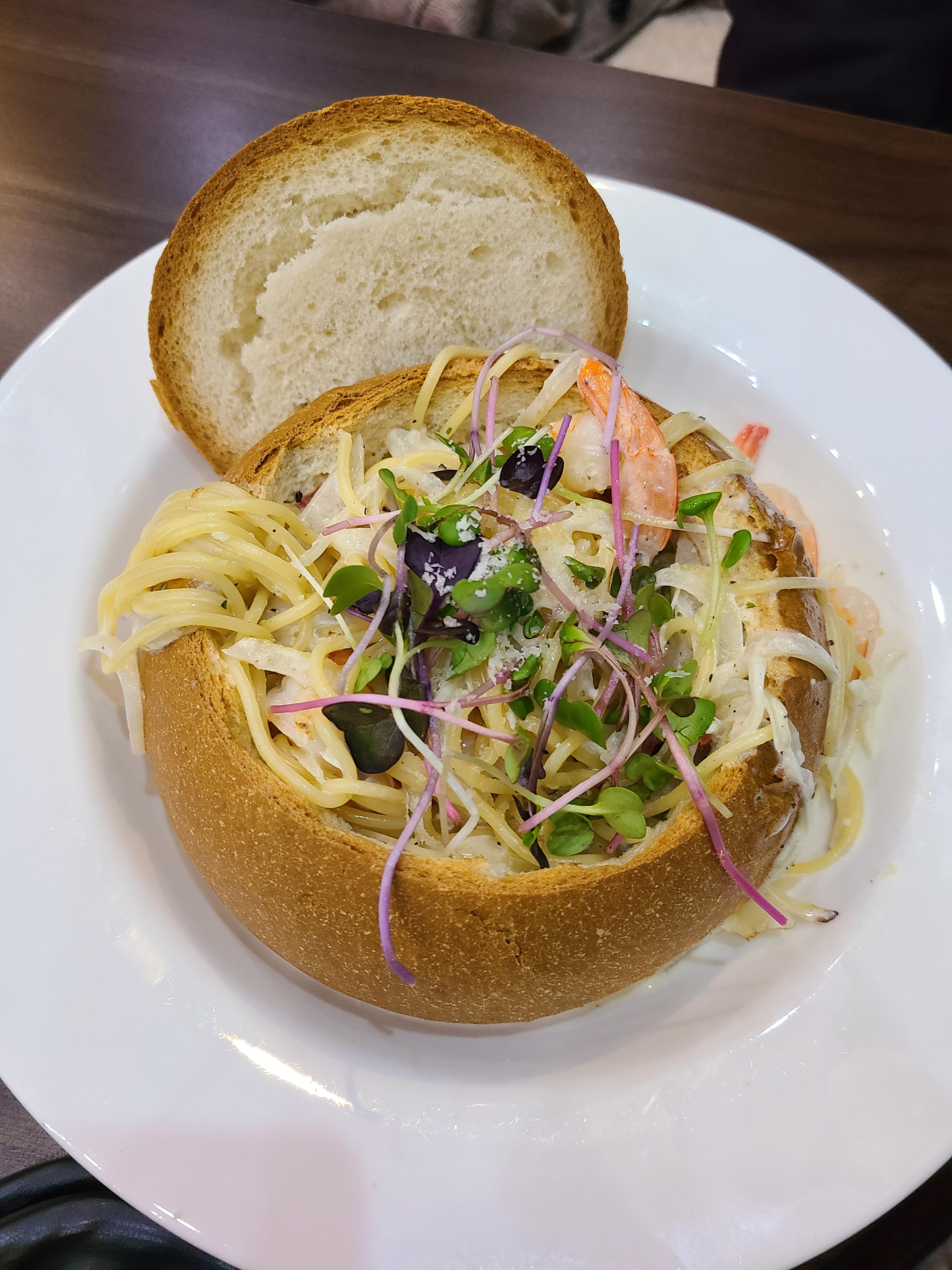 나는 와이프랑 둘이 가서 돈가스, 파스타, 필라프를 시켰다.