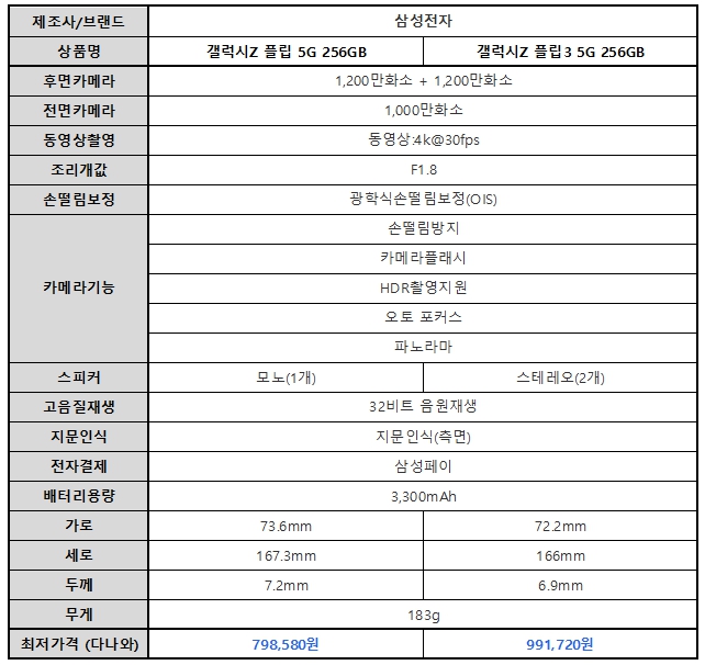 비스포크 에디션의 경우 플립3 보다 약 30만원이 더 비싸다.