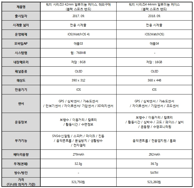 필자가 봤을 때는 애플 워치3와 애플 워치4의 변경 사항은 없는 것으로 보입니다.