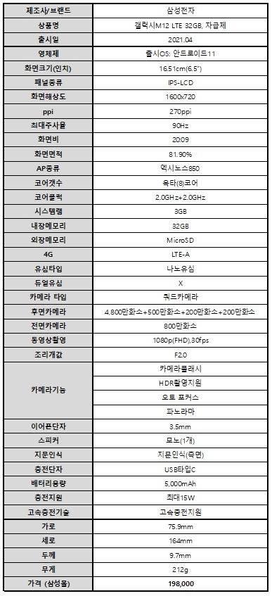 그럼 현재 판매되고 있는 갤럭시 M12에 대해 알아보자.