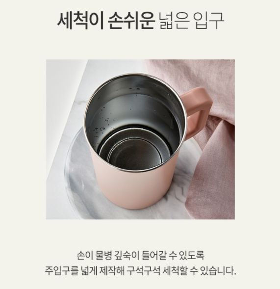 물병 내부는 스테인리스로 입구부분도 넓어서 세척에 매우 용이하다.