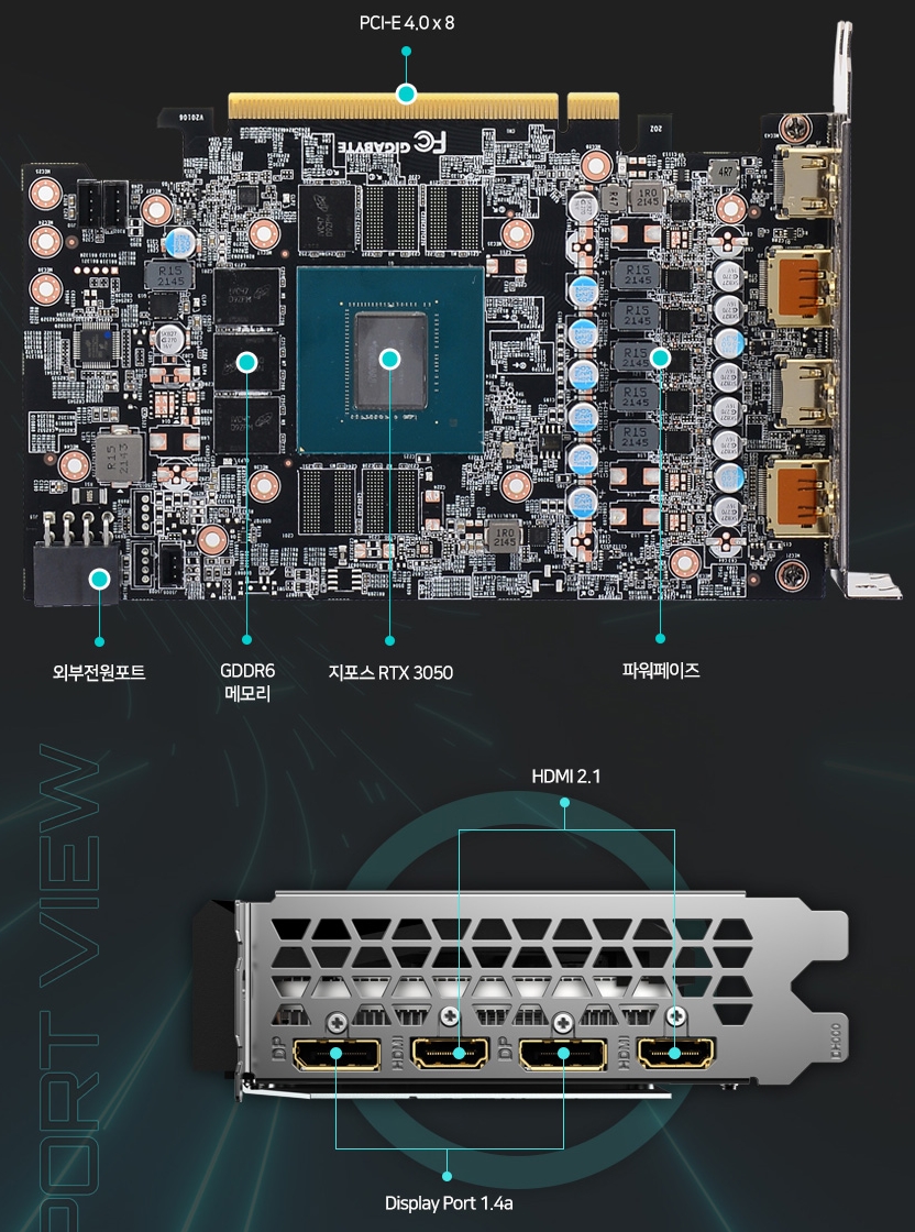 측면에는 GIGABYTE 로고에 RGB가 들어가 있다.