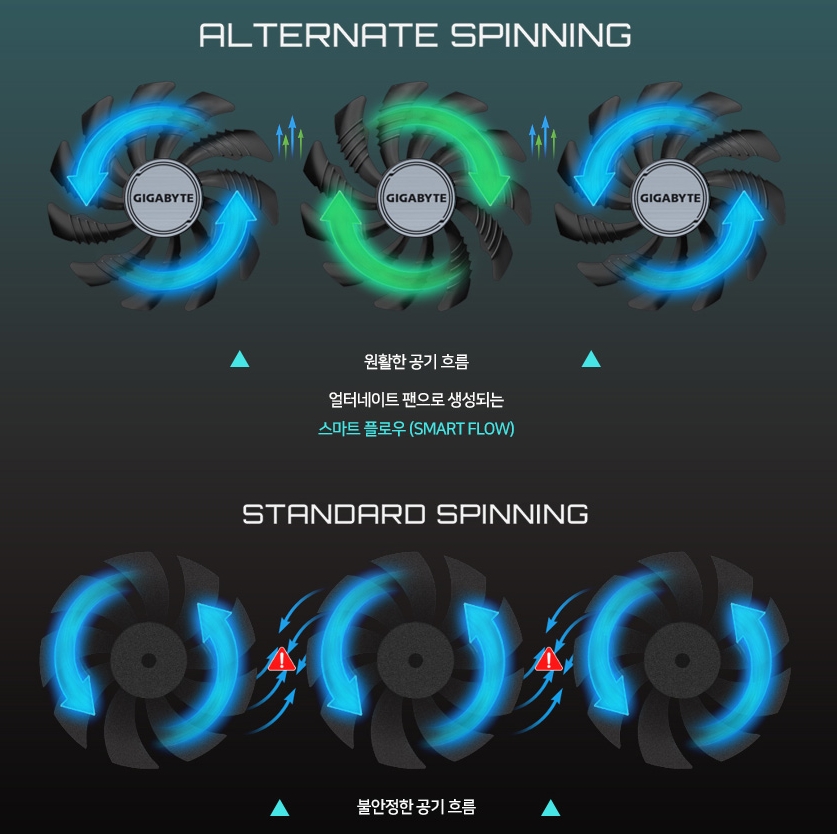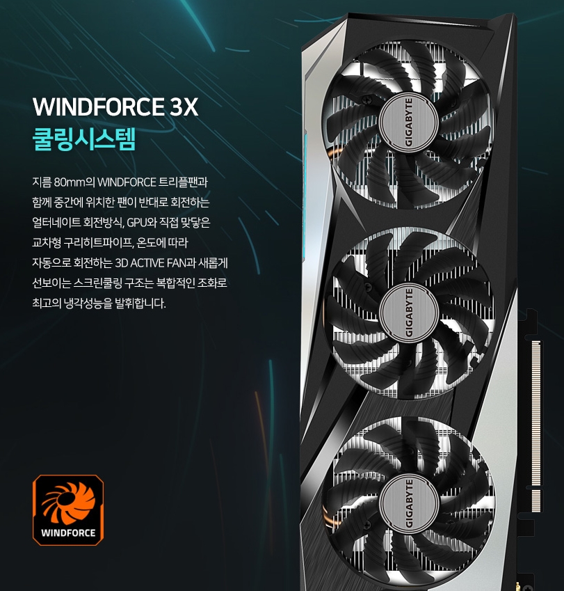 기가바이트의 제품의 경우 쿨링팬이 3개를 가진다.