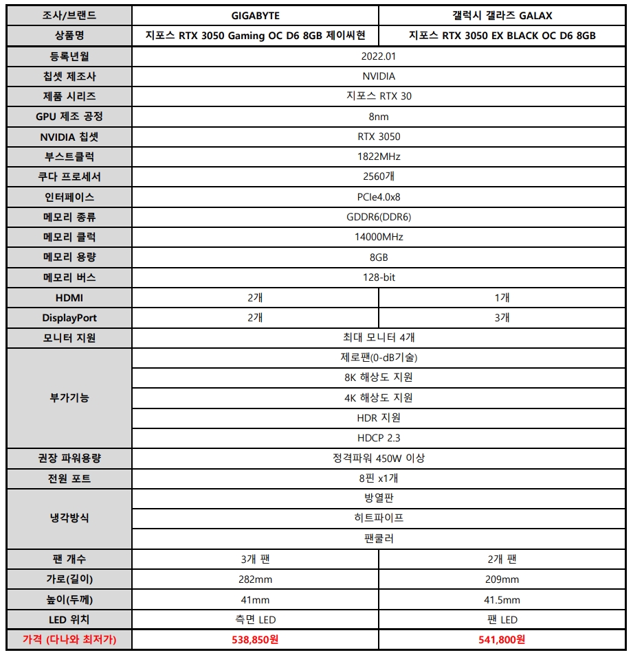 2022년 01월 27일에 RTX3050 그래픽 카드가 출시했다.