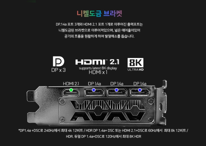 후면에는 DP 포트 2개와 HDMI 포트 2개가 있으며,