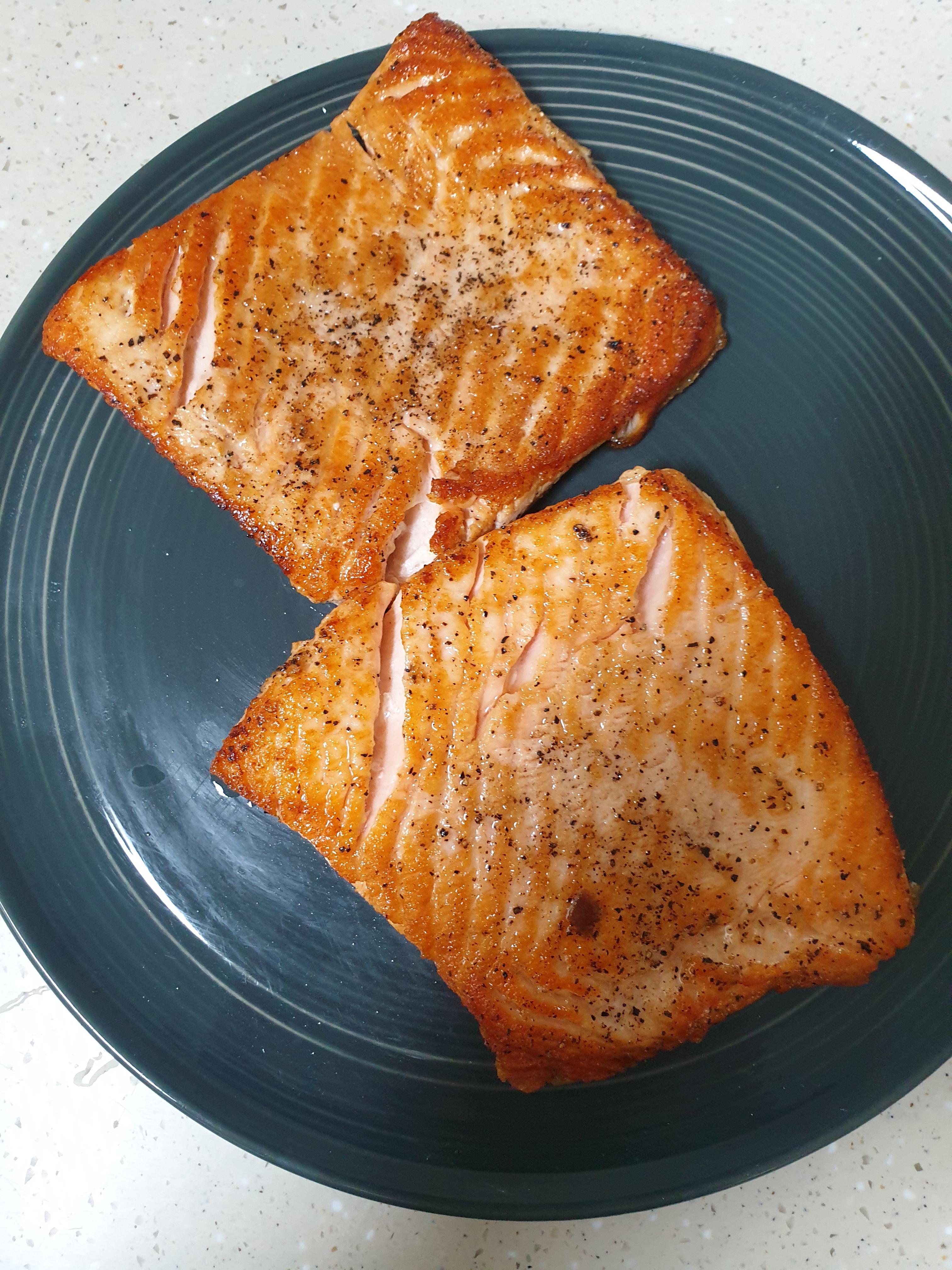 연어는 노르웨이산 500g 이고 후라이팬에 구워준다.