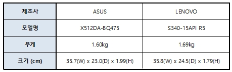 두께는 LENOVO... 무게는 ASUS...