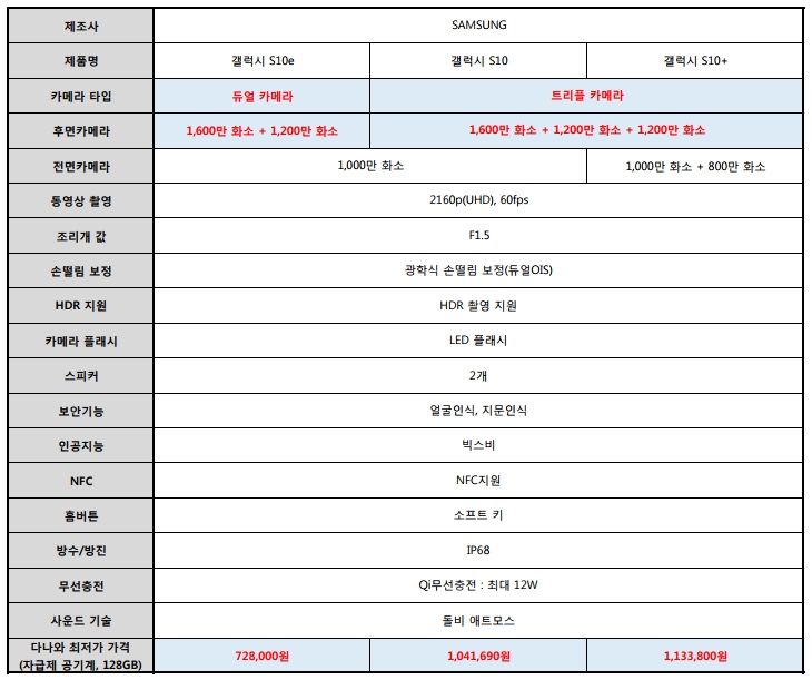 [비교] SAMSUNG 갤럭시 S10e vs S10 vs S10+